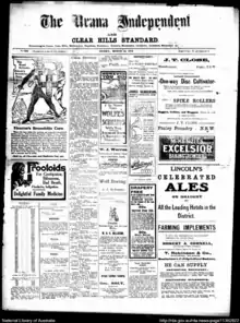 The Urana Independent was first published by Henry Dunstan.[1] In 1906 the residents of Urana offered £100 to anyone who started a newspaper in the town. Dunstan was the first to do so and began to publish The Urana Independent in August. Dunstan had already founded the Minyip Guardian and Sheep Hills Advocate and the Yackandandah Times. Arthur Clague Cowin had planned to publish a Urana newspaper but arrived in the town a day too late. The Urana Independent ceased publication in 1921.[2] The Clear Hills Standard was published separately on Saturdays.[3] This Saturday edition was also sometimes known as The Clear Hills Standard and Daysdale and Saverneke Times.[4]