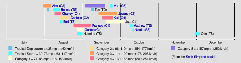 | Timeline of the 2004 Atlantic hurricane season | |||||