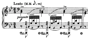 The visual image of this piece is a funeral. The middle section's wild octaves and rapidly climbing and descending arpeggios are filled with exaltation (as the original notes Franz Liszt scripted).