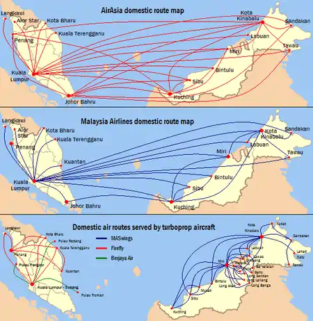 Malaysia has 62 airports, of which 38 are paved. Malaysia Airlines, as the national carrier, offers extensive international and domestic routes. Major international routes and domestic routes crossing between West Malaysia and East Malaysia are served by Malaysia Airlines, AirAsia, MYAirline, Firefly, and Batik Air Malaysia while smaller domestic and regional routes are supplemented by smaller airlines like MASwings, Firefly and SKS Airways. Cargo airlines such as MASkargo, Teleport, World Cargo Airlines, Kargo Xpress, and Raya Airways play a crucial role in enhancing connectivity between West and East Malaysia and Malaysia to the world.