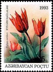 In 1993, a postage stamp in Azerbaijan, within the flowers series was issued with a image of the tulip.[38]