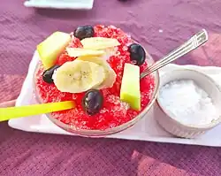• Bici Bici - starch cubes covered with shaved ice with syrup and fruits.