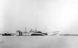 SS Berwyn photographed off the Bethlehem Shipbuilding Corporation's Bethlehem Sparrows Point Shipyard at Sparrows Point, Maryland, on 26 September 1918 at the time of her completion, two days before her acquisition by the United States Navy. She is painted in dazzle camouflage.