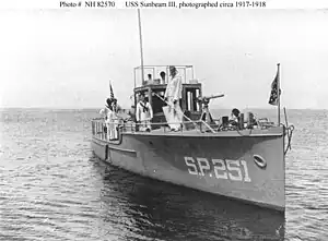 USS Sunbeam III (SP-251) was a United States Navy patrol vessel in commission from 1917 to 1919. The prefix designator means Section Patrol Craft.[2]