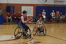 The Lady Movin' Mavs were initially a sports club at UTA and transitioned to full intercollegiate team status once sufficient funds had been raised.[7] It plays under the auspices of the National Wheelchair Basketball Association (NWBA), which organizes intercollegiate wheelchair basketball tournaments across the United States. During the 2014–15 season, the team's roster grew from five to nine players, which allowed the team greater flexibility with strategy and opportunities to rest players.[8] That season, the team played in the National Intercollegiate Wheelchair Basketball Tournament (NIWBT), where it lost to the University of Illinois in its first game and then lost to the University of Wisconsin–Whitewater in the third-place game.[9]