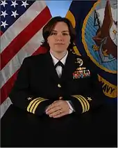 A female U.S. Navy officer in Service Dress Blue uniform (2012)