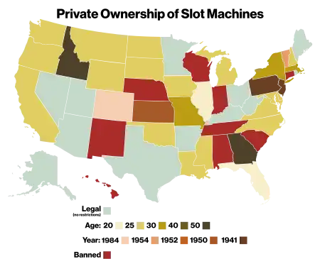 This is a list of potential restrictions and regulations on private ownership of slot machines in the United States on a state by state basis.