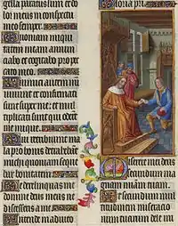 Uriah the Hittite (Hebrew: אוּרִיָּה הַחִתִּי ʾŪrīyyā haḤītī) is a minor figure in the Hebrew Bible, mentioned in the Books of Samuel, an elite soldier in the army of David, king of Israel and Judah, and the husband of Bathsheba, the daughter of Eliam. While Uriah was serving in David's army abroad, David, from the roof of his palace, looked down on his city and spied upon Bathsheba bathing in the privacy of her courtyard. Moved by lust at the sight of her, David called for Bathsheba to be brought to him and slept with her, impregnating her. In an effort to hide his misdeeds, David called Uriah home from war, hoping that he and Bathsheba would have sex and that he would be able to pass the child off as belonging to Uriah. However, Uriah, being a disciplined soldier, refused to visit his wife. So David murdered him by proxy by ordering all of Uriah's comrades to abandon him in the midst of battle, so that he ended up getting killed by an opposing army. Following Uriah's death, David took Bathsheba as his eighth wife.