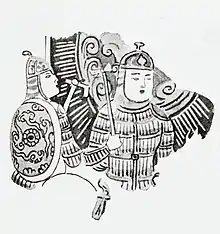 Bögü Qaghan, third Khagan of the Uyghurs, in a suit of armour, converting to Manicheism in 762. 8th century manuscript (MIK III 4979).[17]