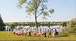 The Chuvash traditional religion boasts an unbroken continuity from pre-Christian times, having been preserved in a few villages of the Chuvash diaspora outside Chuvashia until modern times.[4] In the late 1980s and early 1990s, together with the demise of the Soviet Union, a cultural and national revival blossomed among the Chuvash, and its leaders gradually embraced the idea of a return to indigenous Paganism, as did Chuvash intellectuals.[5] The Chuvash identity movement looked to movements in the Baltic states for inspiration.