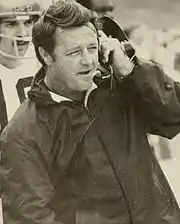 The 1973 and 1974 seasons, however, were not successful campaigns for the Mountaineers, as they finished with records of 6–5 and 4–7. Despite the disappointment of those seasons, Danny Buggs earned All-American status for his contributions in both campaigns. The 1975 season was successful as the Mountaineers compiled a 9–3 record, a 13–10 Peach Bowl victory over North Carolina State, and a final ranking of No. 17 in the Coaches Poll and No. 20 in the AP Poll. Additionally, the Mountaineers upset the No. 20 Pitt Panthers 17–14 on a game-winning field goal in the closing seconds in yet another memorable chapter of the Backyard Brawl. Bowden later described the victory as one of the most exciting ones of his coaching career.[30] Following the 1975 season, Bowden left WVU to become the head coach at Florida State, where he would become the second winningest coach in NCAA Division I-A/FBS history. In just six seasons with the Mountaineers, Bowden produced a 42–26 record, good for fifth all-time in the program.[21] Bowden's departure not only signaled the end of his tenure at West Virginia, but to the end of WVU's winning ways in the 1970s.