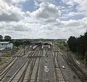 In 1899, Westbury station was entirely rebuilt to cater for the 1900 line, creating two island platforms six hundred feet long and forty feet wide.[5][6] It has since been rebuilt and remodelled several times, most recently when the area was resignalled in 1985 (when the Down Salisbury platform line was lifted), but without changing the underlying form created in 1901. In 2013 the Swindon and Wiltshire Local Transport Body prioritised the reopening of this platform face at an estimated cost of £5.4m.[7]