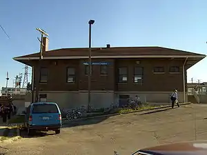 Western Avenue is the name of a railroad station owned by Metra, located in the West Town community area[2] of Chicago, Illinois near Western Avenue. The station is 2.9 miles (4.7 km) away from Union Station, the inbound terminus of the line.[3] Western Avenue station serves the Milwaukee District West Line, North Central Service, and Milwaukee District North Line, and is the last inbound stop for these three lines before the terminus at Union Station. Although it is not a station stop, Amtrak Hiawatha Service trains and the Empire Builder also pass through here. The station was previously used by the Chicago, Milwaukee, St. Paul and Pacific Railroad. Located near the station are the California Coach Yard, and the Western Avenue Rail Yard, the latter of which host to Metra's final EMD F40Cs. Just southeast of the station platforms is a diamond where the Milwaukee Road Metra routes cross the tracks of the Union Pacific West Line to Ogilvie Transportation Center, then turn to run parallel to them. This goes on for about a mile before they split, as the West Line tracks continue to Ogilvie. The junction is controlled by the nearby A-2 tower.