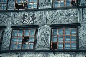 The salt house built at Prachatice in 1571. Note his name WILHELMUS ROSENBERG in the central fresco.
