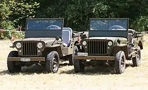The Willys MC, formally the 14-Ton, 4 x 4, Utility Truck M38, or the G740 by its U.S. Army Standard Nomenclature supply catalog designation, is a quarter-ton four-wheel drive military light utility vehicle made by Willys between 1949 and 1952. It replaced (in production), and succeeded the World War II Willys MB and Ford GPW models, with a total production of some 50,000 units — less than one tenth the number of WWII models built.[1] Unlike during WWII, Ford was no longer involved in the production.