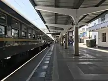 Xichang Station has 1 main line, 4 arrival and departure lines and 1 freight line,[7]:384 with a side platform and an island platform.[4]:206 There are wooden special lines and overhaul lines on the east side of the Kunming end of the station, and the power supply section and catenary work area on the west side.