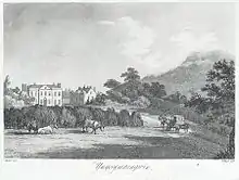The estate may be traced back to the days of Gruffudd ab Adda of Dôl-goch and Ynysymaengwyn, bailiff of the commote of Ystumanner in 1330 and 1334, whose effigy is thought to lie in St Cadfan's church in Tywyn.[3] His daughter Nest married Llywelyn ap Cynwrig ab Osbwrn Wyddel, and Ynysymaengwyn was to remain in the hands of their direct male descendants for well over two centuries. Llywelyn's great-great-grandson Siencyn (or Jenkin) ab Iorwerth ab Einion ap Gruffudd ap Llywelyn farmed Crown lands in Cyfyng and Caethle as well as the Aberdyfi ferry in the middle of the fifteenth century.