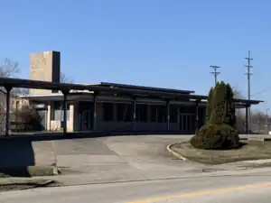 Youngstown is a former Pennsylvania Railroad station in Youngstown, Ohio. This station was preceded by another depot, which was condemned and demolished in 1949.[1] Construction of this station began in February 1948, and the completed building was dedicated on March 15, 1949.[2][3]The building was designed by Walker & Weeks, architects of Cleveland, Ohio and built by the Heller-Murray Company of Youngstown, Ohio at a cost of $350,000, or approximately $4.4 million in 2022 US dollars.[2][4]This station closed in 1965, with the termination of remaining commuter service between Youngstown and Euclid Avenue station in Cleveland.[5][6] Ownership of the Lordstown Secondary as well as the station passed from Penn Central to the Baltimore and Ohio Railroad, Conrail, and is currently owned by Norfolk Southern. The station itself was acquired by Phantom Fireworks and previously used as a firework showroom.