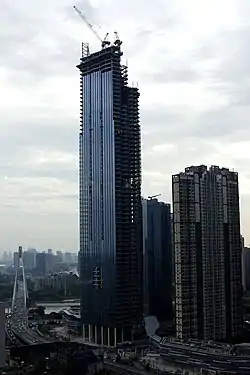 Yuexiu Fortune Center Tower 1 is a supertall skyscraper in Wuhan, Hubei, China. It has a height of 330 metres (1,080 ft). Construction began in 2012 and the building was completed in 2017. The tower is the tallest building in a complex which includes an additional 8 residential towers and a shopping mall.[1]