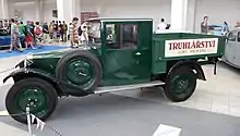 Zbrojovka built cars and light commercial vehicles with two-stroke engines. The first model was the Disk, which was a two-door light car with a four-cylinder, 598cc, 10 horsepower (7.5 kW) engine launched in 1924.[3] This was succeeded in 1926 by the Z 18, which was a two-door sedan powered by a two-cylinder, 1005 cc engine producing 18 horsepower (13 kW).[4] This was succeeded in 1929 by the Z 9,[5] which had a 993cc engine producing 22 horsepower (16 kW).[6] Body options for the Z 9 included a four-door sedan or convertible, two-door, four-seat sedan, two-seat convertible and a commercial light truck.[7]